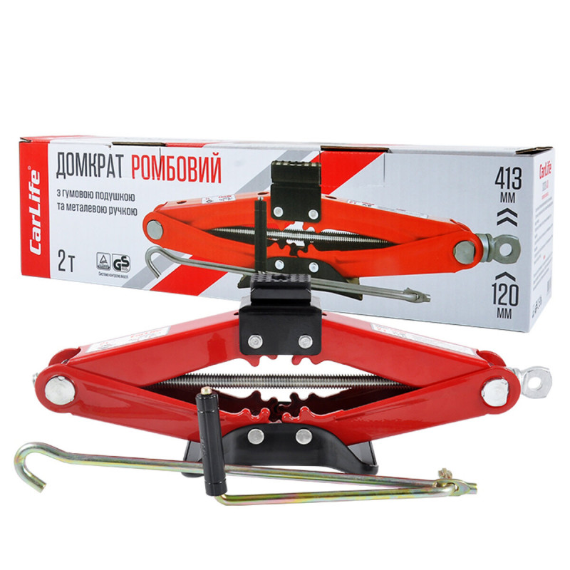 Домкрат ромбовий CarLife 2т 120-413мм з гумовою подушкою SJ227