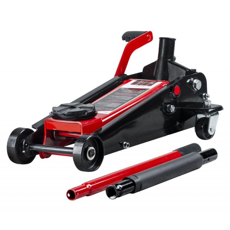 - Металеві колеса (задні поворотні) і поворотна ручка довжиною 90 см для зручного встановлення домкрата під автомобілем