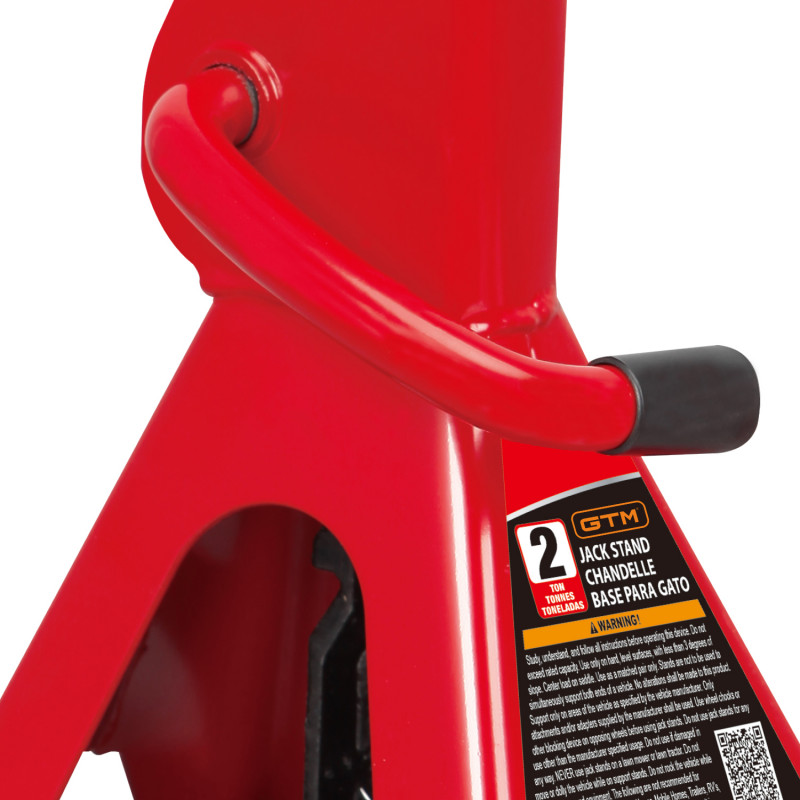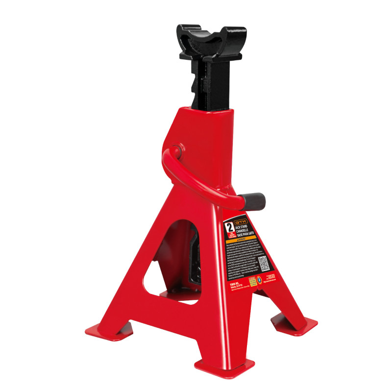 GTM T42001 - комплект із 2 сталевих підставок для фіксації та страховки на висоті автомобілів вагою до 2 т. Підставки застосовуються у разі відсутності естакади або оглядової ями в гаражі.