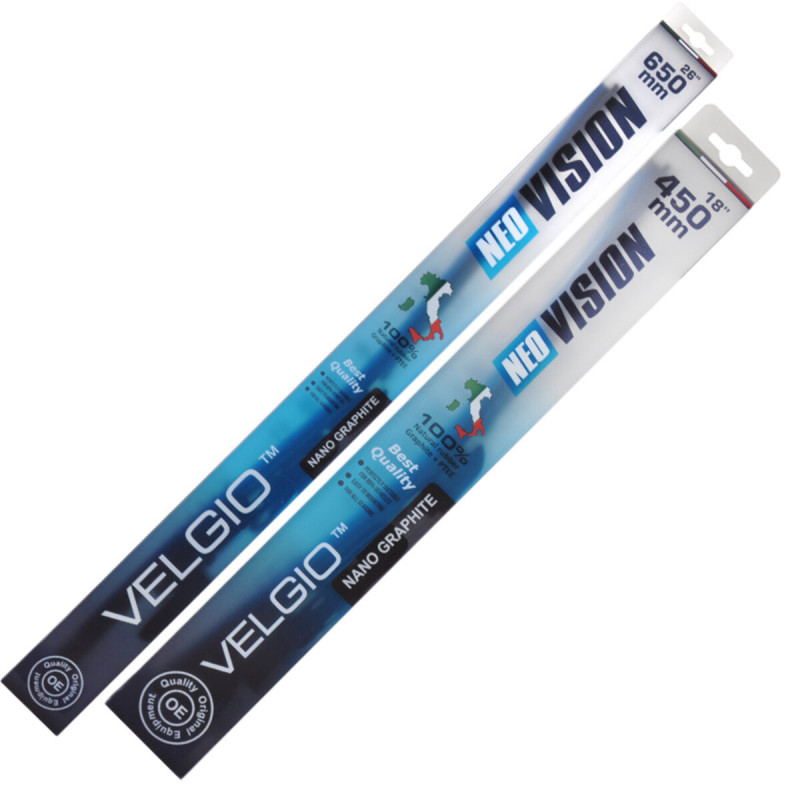 Комплект щіток склоочисників безкаркасних Velgio Neo Vision для Volkswagen Golf 2013-2022 складається з: