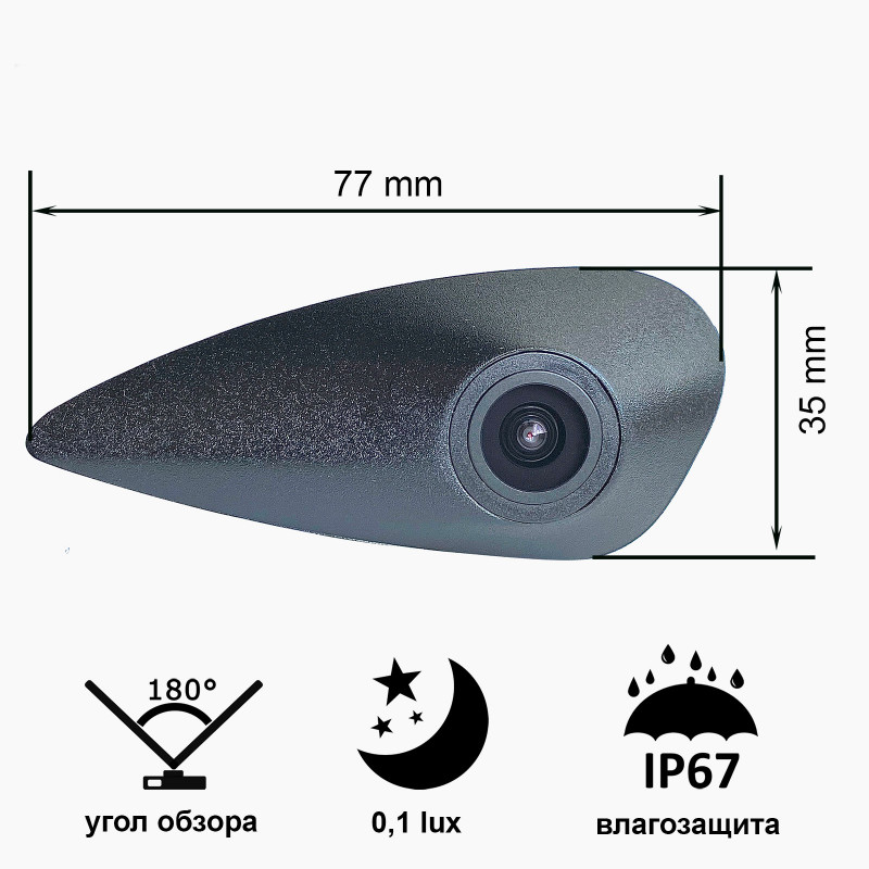 Штатні камери переднього огляду Prime-X призначені для установки на автомобіль без будь-яких змін, в штатні місця (як правило – в решітку радіатора або в емблему автомобіля).