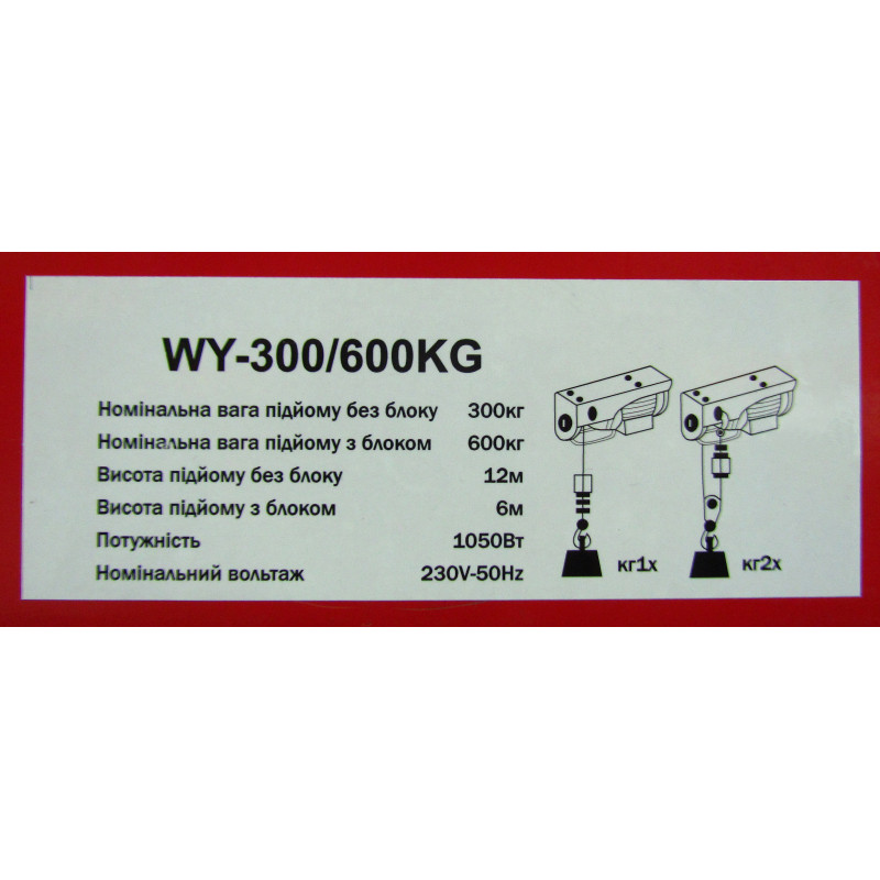 Електроталь тросова 300кг/12м 600кг/6м 1,0 кВт