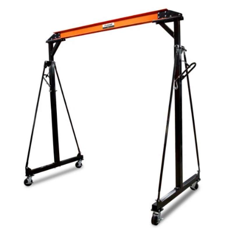 Технічний опис: Мобільний козловий кран Unicraft PK 1 призначений для підйому, опускання та переміщення піднятих вантажів. Козловий кран використовується при проведенні будівельних, монтажних, ремонтних та вантажно-розвантажувальних робіт у приміщеннях, не обладнаних відповідною вантажопідйомною технікою. Основними секторами застосування є склади виробничих та торгових підприємств. Конструкція козлового крана Unicraft PK 1 досить міцна і завдяки додатковим поперечним розпіркам відрізняється стійкістю до різних навантажень. Легке переміщення забезпечують чотири поворотні ролики, оснащених гальмом стоянки. Налаштування робочої висоти козлового крана проводиться в ненавантаженому стані за допомогою важелів і двох запобіжних болтів для опори, що несе. Верхня поперечна балка Н-подібного профілю служить для установки підйомного обладнання, наприклад ручної або моторизованої ланцюгової талі. Використання козлового крана суттєво полегшує важку ручну працю, а управління козловим краном може здійснювати лише кілька співробітників. загальні характеристики Вантажопідйомність 1 т мін. висота підйому 2200 мм Макс. висота підйому 3600 мм Ширина проходу 2400 мм. Розміри I-подібного візка 74 x 120 мм Розміри та вага Довжина 2500 мм Ширина/глибина 1200мм Висота 2520 мм Вага нетто прибл. 128 кг