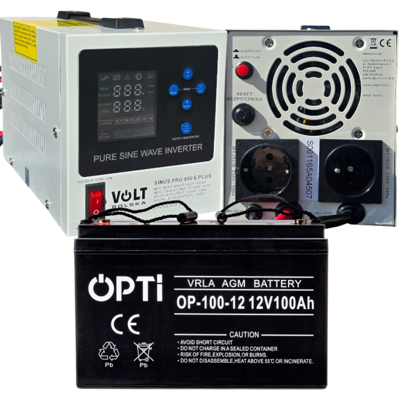 Аварійний комплект живлення Volt Polska SINUS PRO 850 E PLUS 12/230V 500/850W + Акумулятор GEL OPTI 12V 110 Ah