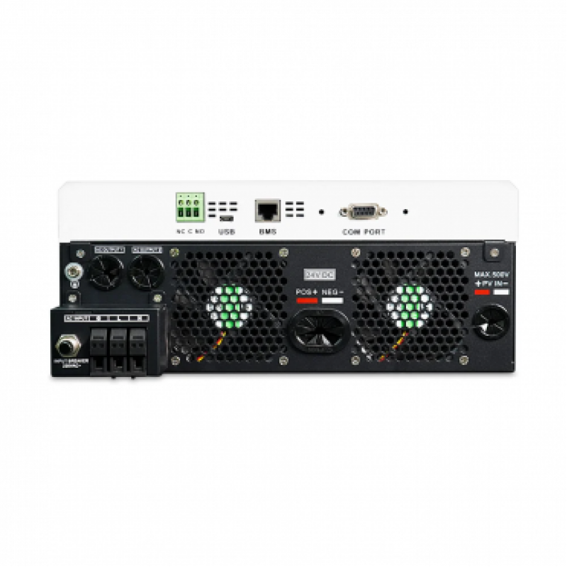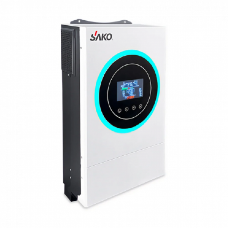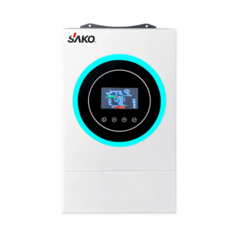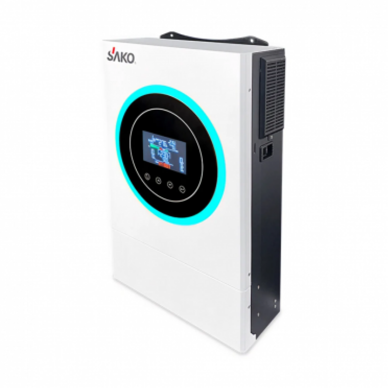 Інвертор автономний SAKO Sunon V 4.5K/24V - гібридний однофазний пристрій, що виконує функції інвертора, зарядного пристрою акумулятора, сонячного зарядного пристрою. Також цей інвертор може використовуватися разом із генератором.