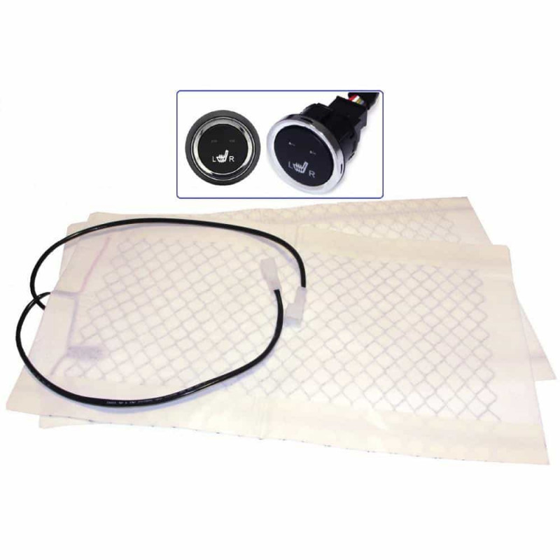 Універсальний підігрів сидінь, що вбудовується, на 2 сидіння з вуглеволоконним нагрівальним елементом. Головний плюс даного матеріалу – плавне нагрівання та можливість обрізання мату під потрібний розмір. У разі обриву або пошкодження окремого дроту мату, решта мату працюватиме, чим не можуть похвалитися дешевші нагрівальні елементи дротяного типу. Має вбудований термостат, який відключить живлення коли температура мату наблизиться до позначки 65проС.