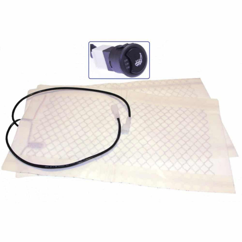 Універсальний підігрів сидінь на 1 сидіння з вуглеволоконним нагрівальним елементом. Головний плюс даного матеріалу – плавне нагрівання та можливість обрізання мату під потрібний розмір. У разі обриву або пошкодження окремого дроту мату, решта мату працюватиме, чим не можуть похвалитися дешевші нагрівальні елементи дротяного типу. Має вбудований термостат, який відключить живлення коли температура мату наблизиться до позначки 65проС.
