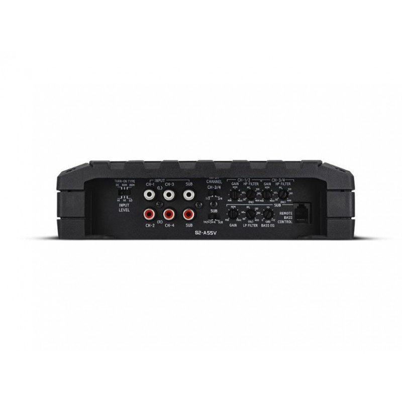 5-канальний підсилювач S2-A55V серії S забезпечує чисте, високоякісне звучання потужністю 60 Вт RMS при 2 Ом для кожного з передніх і задніх динаміків вашого автомобіля, одночасно живлячи сабвуфер потужністю до 300 Вт RMS. Цей підсилювач, сертифікований як Hi-Res Audio, оживляє вашу музику, чітко передаючи точні деталі та емоційну силу з частотною характеристикою до 40 кГц. Спеціальний канал сабвуфера ще більше покращує вашу музику, забезпечуючи точні деталі, потужні ритми та емоційний вплив. У 3-канальній 2-смуговій системі цей підсилювач забезпечує 120 Вт RMS для пари високопродуктивних фронтальних динаміків та 300 Вт RMS для сабвуфера.