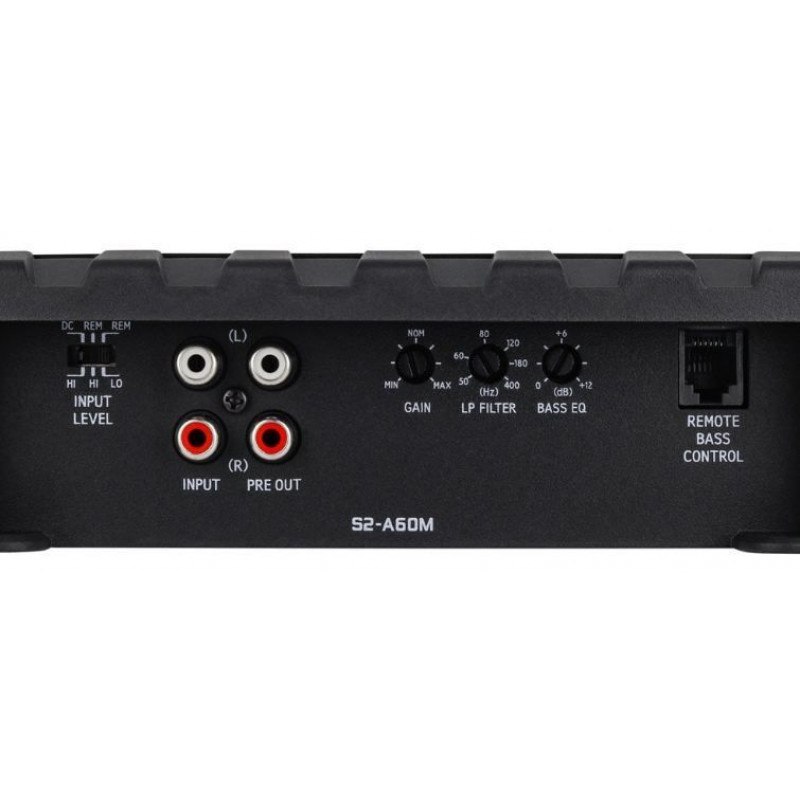 Моно підсилювач S2-A60M з потужністю до 600 Вт RMS на 2 Ом допоможе вам отримати глибокий, але точний бас з відмінним контролем у вашому автомобілі. Регулятор BASS EQ з можливістю плавного регулювання значно посилить відтворення низьких частот вашим сабвуфером. Також можна додати додатковий провідний пульт дистанційного керування RUX-KNOB2 (продається окремо) для оперативного регулювання рівня сабвуфера.