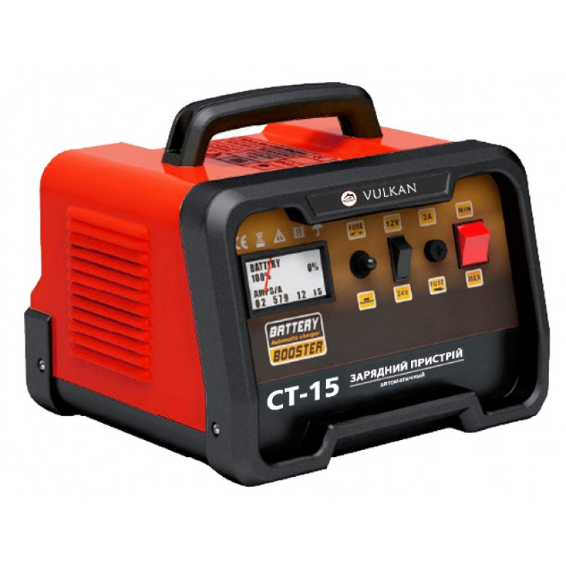 Зарядний пристрій Vulkan CT15 - зручний і компактний зарядний пристрій для зарядки АКБ емностью 20-150 Ah і напругою 12-24В.