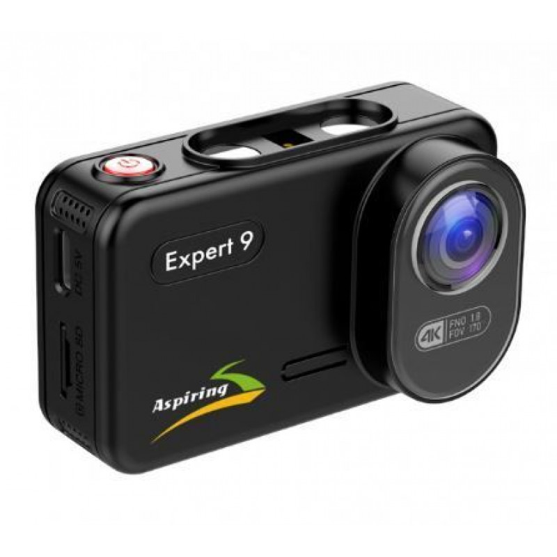 Пристрій оснащений сучасним процесором NTK 96675, що відрізняється підвищеною світлочутливістю та забезпечує якісний запис як в денний, так і в нічний час доби. Скляний 6-лінзовий об’єктив має кут огляду в 170° і дозволяє зафіксувати на відео попутну та зустрічну смугу руху. Завдяки вбудованому GPS-модулю, на відео фіксуються координати та швидкість руху автомобіля. Вбудований Wi-Fi модуль дає змогу під’єднати відеореєстратор до вашого смартфону для зручного управління налаштуваннями, а також перегляду та завантаження відео на пристрій. Aspiring Expert 9 дуже міцно кріпится до скла на 3М скотч, а зручність швидкознімність йому забезпечує магніт.