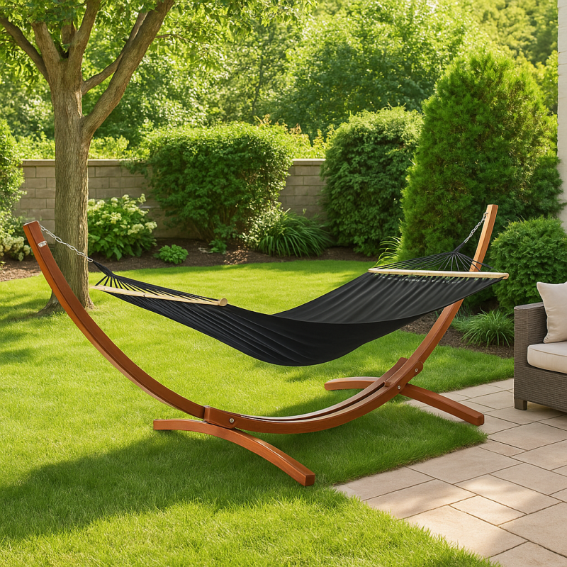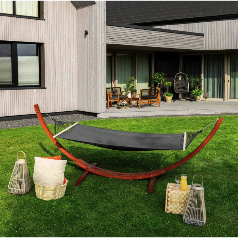 Відпочинок на свіжому повітрі може бути не просто комфортним, а по-справжньому вишуканим - саме таким, яким його створює гамак Di Volio Trevia. Цей комплект - уособлення гармонії між класичним дизайном, екологічними матеріалами та продуманою функціональністю. Виготовлений з натуральної модрини та м'якої бавовни, він стане справжньою окрасою вашого саду, тераси або патіо. Гамак розрахований на одну людину та пропонує ідеальні умови для відпочинку на самоті з книгою, музикою чи власними думками.