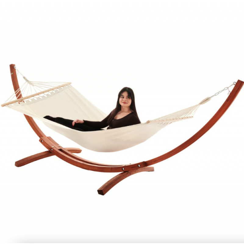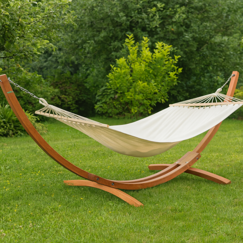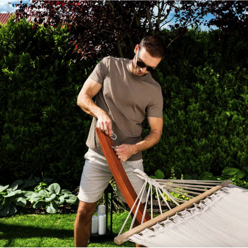 Відпочинок на свіжому повітрі може бути не просто комфортним, а по-справжньому вишуканим - саме таким, яким його створює гамак Di Volio Trevia. Цей комплект - уособлення гармонії між класичним дизайном, екологічними матеріалами та продуманою функціональністю. Виготовлений з натуральної модрини та м'якої бавовни, він стане справжньою окрасою вашого саду, тераси або патіо. Гамак розрахований на одну людину та пропонує ідеальні умови для відпочинку на самоті з книгою, музикою чи власними думками.