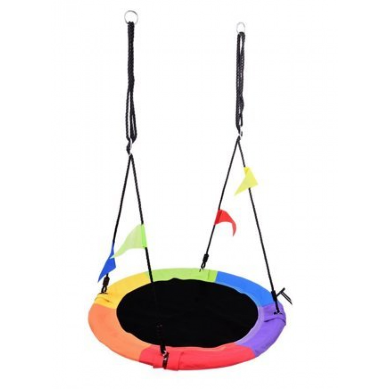 Качели -гнездо станут одним из любимых мест для игр вашего ребенка . Он очень прочный и долговечный , он доставит вам массу удовольствия и развлечений . Стальная рама покрыта мягкой пеной , толстый материал имеет несколько усиливающих швов , все это подвешено на прочных канатах.