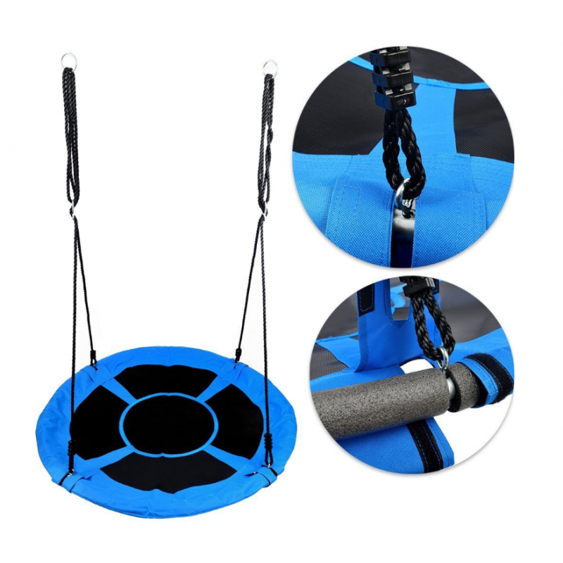 Качели -гнездо станут одним из любимых мест для игр вашего ребенка . Он очень прочный и долговечный , он доставит вам массу удовольствия и развлечений . Стальная рама покрыта мягкой пеной , толстый материал имеет несколько усиливающих швов , все это подвешено на прочных канатах. Сиденье изготовлено из полиэстера Оксфорд плотностью 600 ден , водостойкого и легко чистящегося.