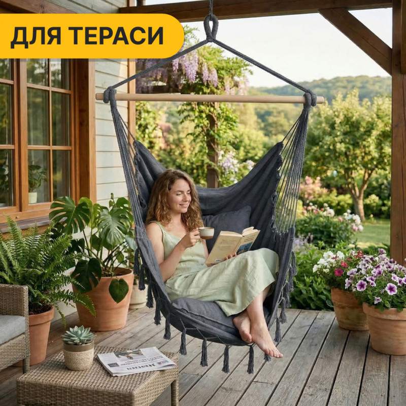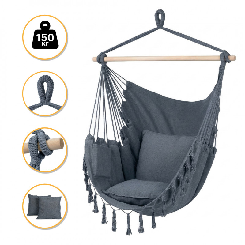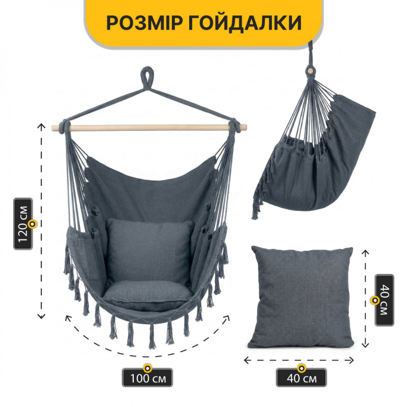 Підвісне бразильське крісло-гамак LEOBRO XL Grey з подушками (LB-1114)