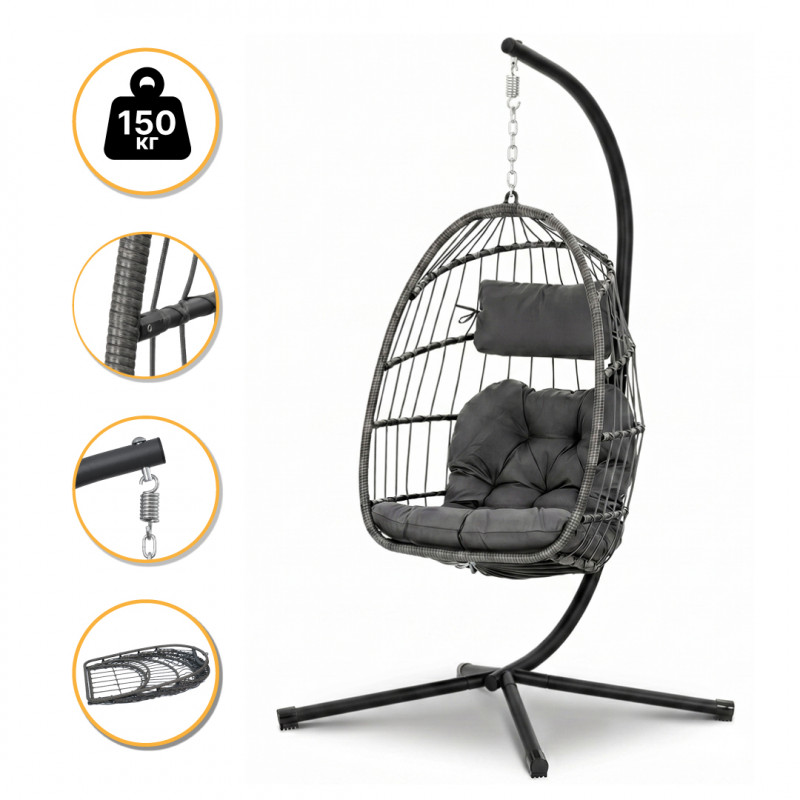 Підвісне крісло-кокон LEOBRO Dark Grey (LB-1058)