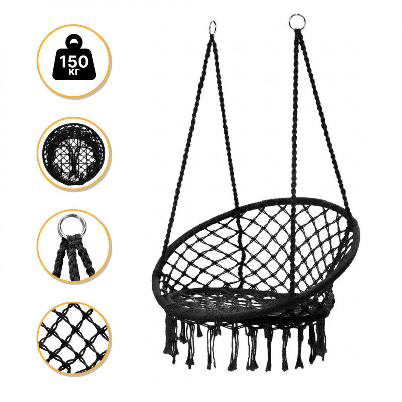 Підвісне плетене крісло-гойдалка LEOBRO Boho XL 80 см Black (LB-1102)