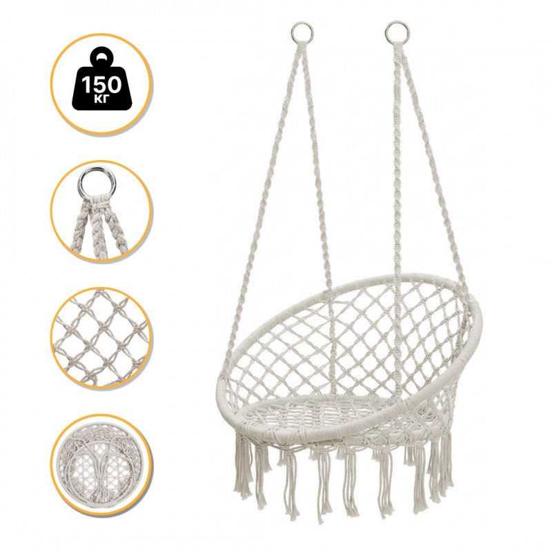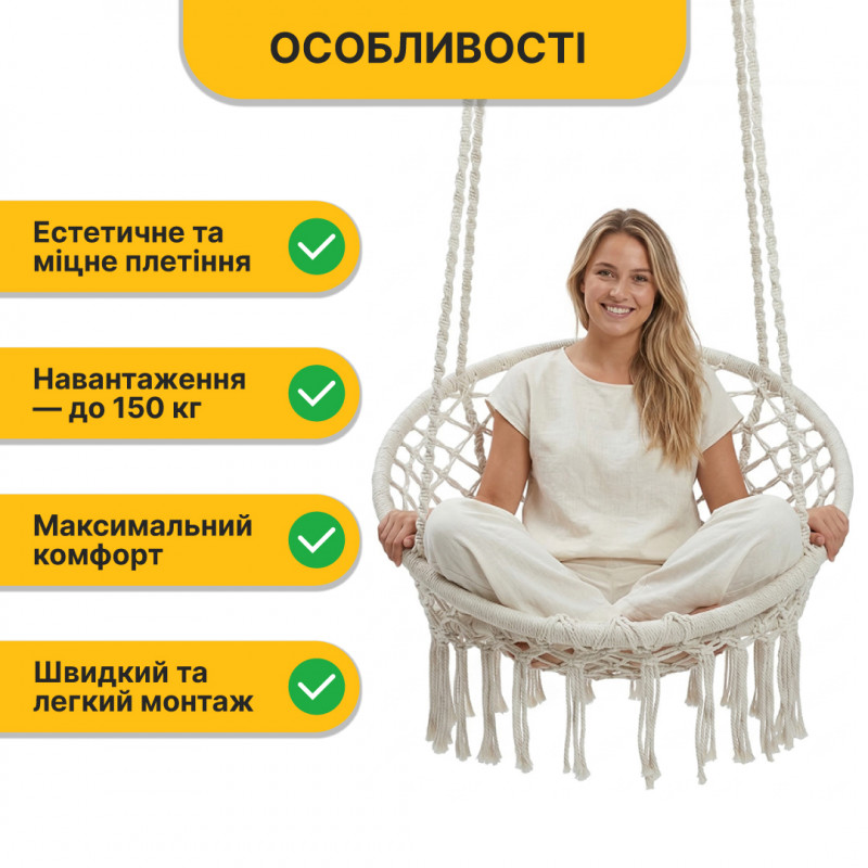 Підвісне плетене крісло-гойдалка LEOBRO Boho XL 80 см Cream (LB-1103)
