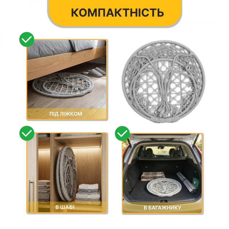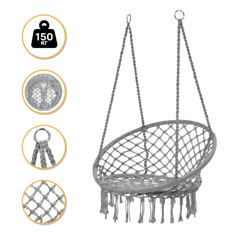 Підвісне плетене крісло-гойдалка LEOBRO Boho XL 80 см Grey (LB-1104)