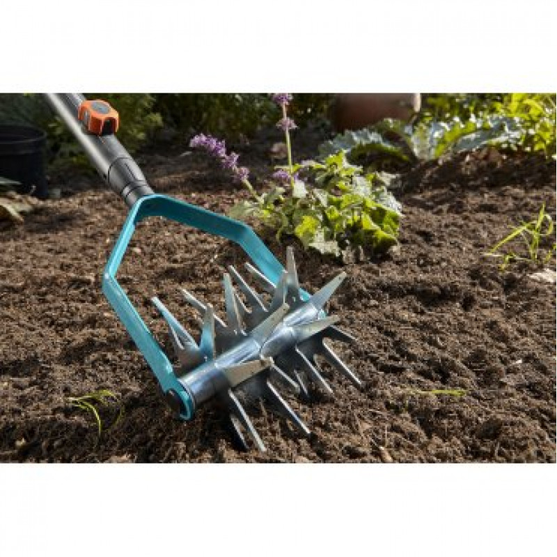 Культиватор чотиризірковий Gardena Combisystem 14 см – інструмент для розпушування, вирівнювання, аерації ґрунту. Належить до системи інструментів Комбісистем, тому може використовуватися з будь-якою ручкою Gardena Combisystem.