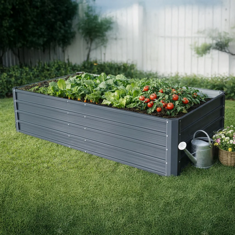 Розміри 180 × 90 × 47 см забезпечують достатньо простору для вирощування різних культур. Висота 47 см створює комфортні умови для роботи з рослинами та сприяє кращому контролю якості ґрунту. Піднята конструкція також допомагає частково обмежити доступ деяких ґрунтових шкідників.