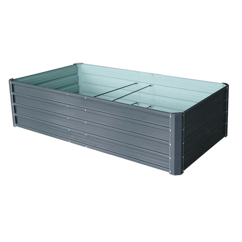 Грядка виготовлена з оцинкованої сталі, що добре витримує вплив вологи та погодних умов під час використання просто неба. Завдяки продуманій конструкції вона зберігає форму, утримує ґрунт і підходить для тривалого використання в саду або на присадибній ділянці.