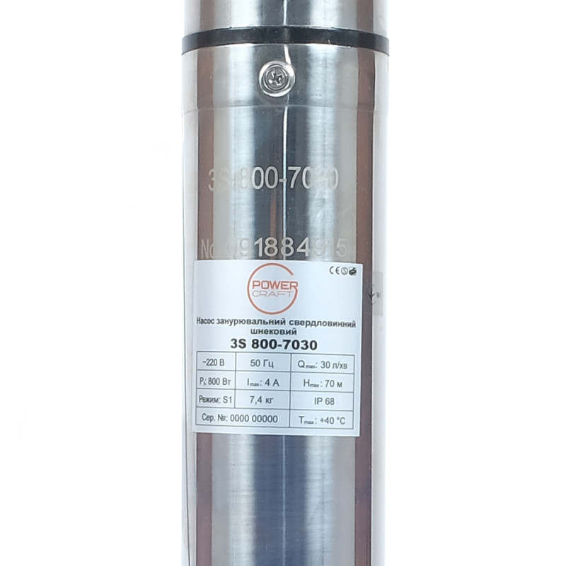 Опис насоса занурювального свердловинного шнекового Powercraft 3S 800-7030w: