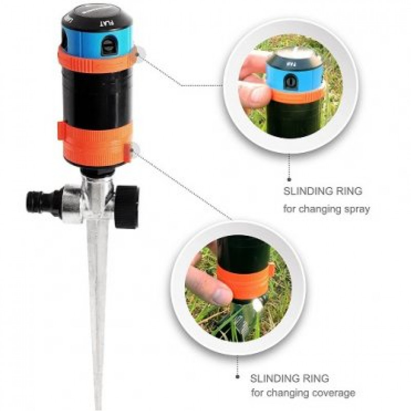 - Можна регулювати площа поливу по секторам: 30 °, 90 °, 180 °, 270 °, 360 °, що дає можливість вибірково поливати окремі ділянки саду / городу в залежності від потреби садових культур.