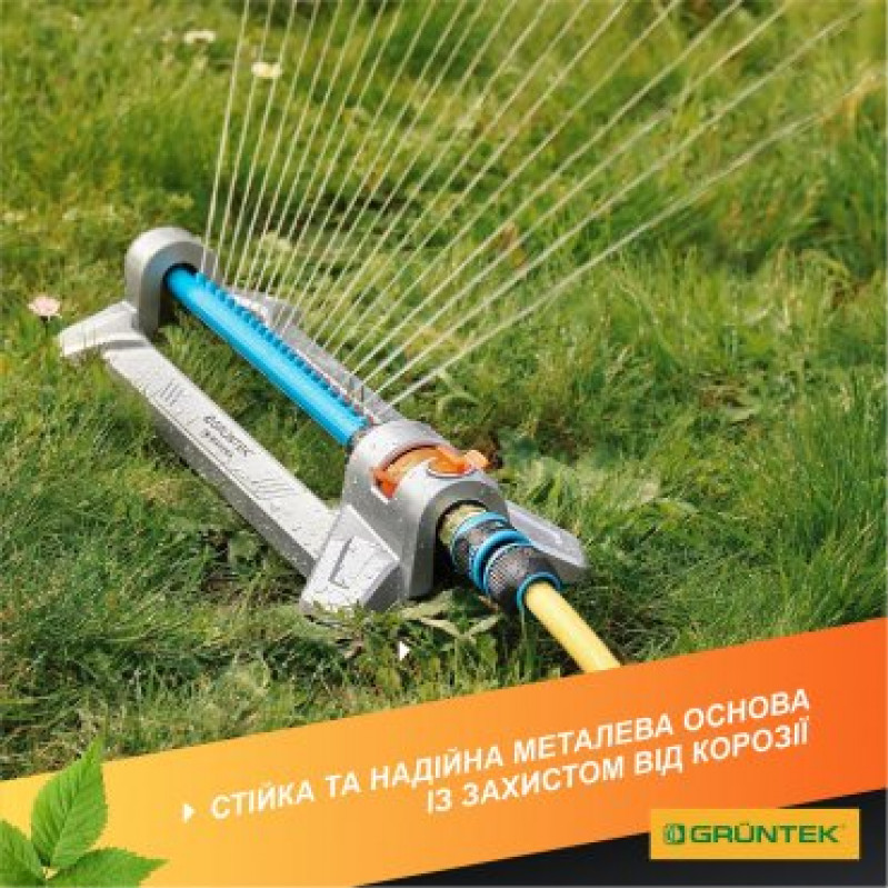 - Дощувач отримав міцну металеву основу, яка захищена від утворення корозії та пошкодження ультрафіолетовим випромінюванням.
