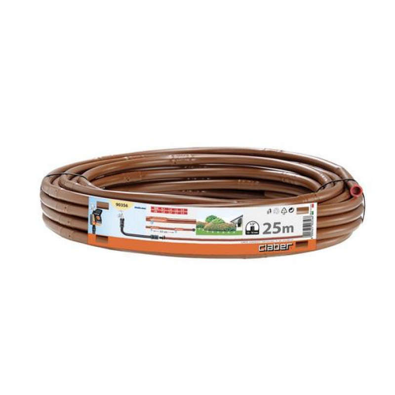 Claber DRIPPER 90356 - поліетиленова трубка 1/2" (13-16 мм). Оснащена внутрішніми лабіринтовими крапельницями 2 л/год з інтервалом 33 см, які забезпечують рівномірний полив по всій оброблюваній площі. Знижене споживання води: робочий тиск 0,5 - 2 бар.