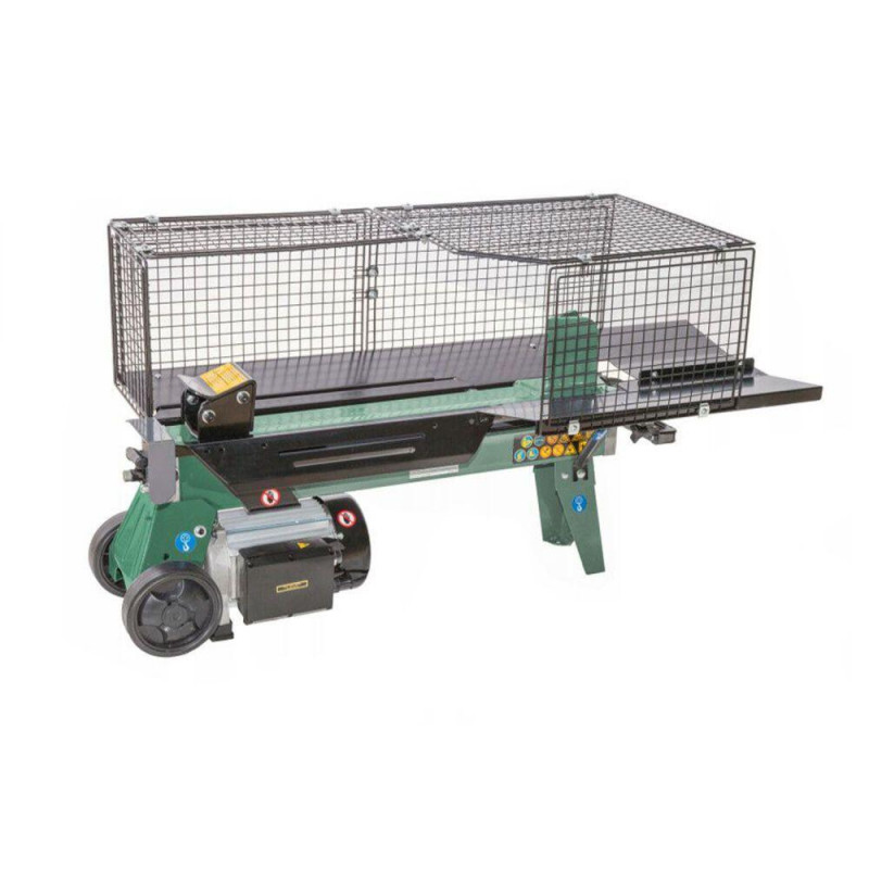 Горизонтальна конструкція зі стійкою платформою забезпечує зручність і безпечність розколювання, а корпус з металевої сітки захищає оператора від викиду стружки. Для комфортної експлуатації є спеціальна підставка, яка дозволяє збільшити висоту дровокола. Два колеса дають змогу без зусиль переміщувати пристрій по ділянці. Технічні характеристики і функціонал дозволяють ефективно використовувати цей дровокол для дому та у невеликих фермерських господарствах.