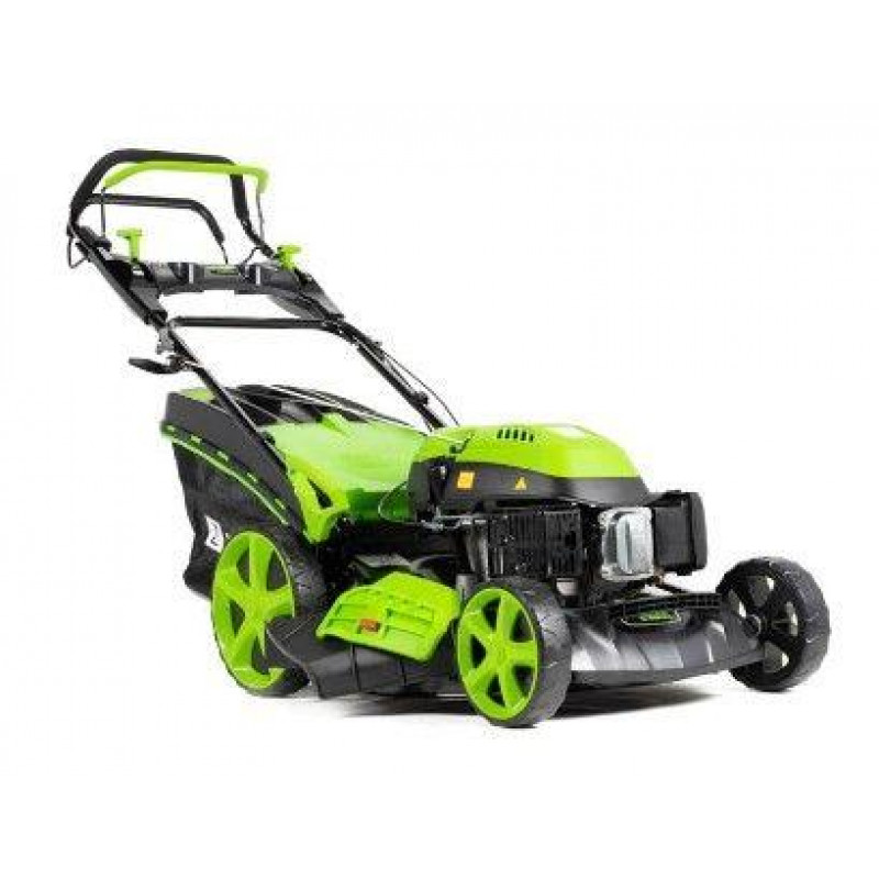 Модель оснащена травозбірником об’ємом 65 л з індикатором заповнення. Окрім збору в травозбірник, трава може викидатися вбік, що зручно при косінні високої трави. Великі колеса з приводом забезпечують високу прохідність і можливість роботи на схилах до 20°. Завдяки ергономічній ручці з м’яким покриттям і відмінній маневреності ця бензинова косарка для газону зручна і легка в експлуатації.