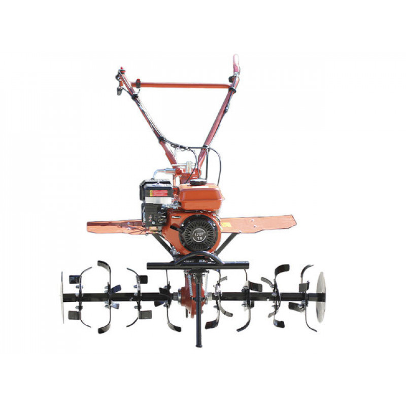 -ТипБензиновий, -Тип паливаБензин, -Тип запускуРучний стартер, -Потужність двигуна, к.с.7, -Об'єм двигуна, см³215, -Витрата палива, г/кВт*год395, -Марка двигуна170F, -Тип двигунаЧотирьохтактний, -Кількість передач3 вперед, 1 назад, -Тип редуктораПланетарні пари (чавун), -ЗчепленняБагатодискове, маслоконтактне, -Ступиця шестигранна, мм32, -Розмір коліс4.00х10, -Ширина колії, мм370 – 500, -Продуктивність, Га/ч0.4 – 0.8, -Радіус розвороту, мм500, -Ширина обробки, мм750 – 1050, -Глибина обробки, мм80 – 300, -Регулювання кермаРегулювання керма вгору/вниз на 135°, ліворуч/праворуч на 180°, -Оберти двигуна, об/хв3600, -Швидкість руху (вперед), км/год.3.5 - 7, -Швидкість руху (назад), км/год.2, -Робоча швидкість фрезерування, км/год.1.5 – 3, -Об'єм паливного бака, л3.6, -Об'єм мастила двигуна, л0.7, -Об'єм мастила редуктора, л2.6, -Повітряний фільтрІнерційно-олійного типу, -Система змазкиРозбризкування, -Кількість фрез(3+1х4)х2, -Габарити в упаковці (ВхШхГ), мм910х455х650, -Вага в упаковці, кг105, -КомплектаціяФреза - 3 секції по 4 ножі (на кожний бік), диски (маркери), зчіпка універсальна, сошник, -ВиробникTATA, -Країна виробникКитай, -Гарантія12 місяців, -КатегоріяМотоблок, -Охолодження двигунаПовітряне, -Тип повітряного фільтраОлійний, -Тип двигунаБензиновий,