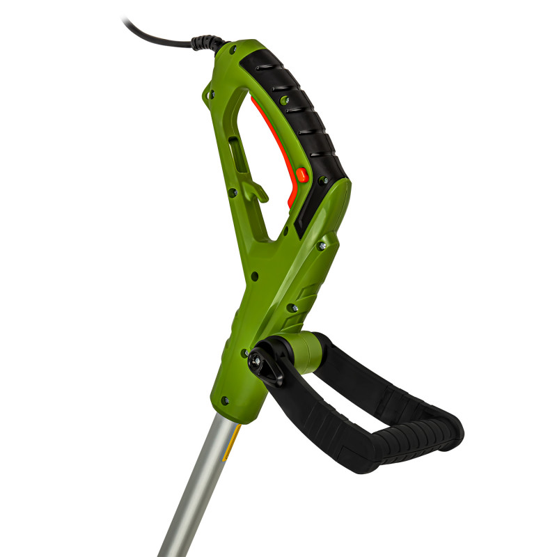 Електрокоса Procraft GT750 - компактний і легкий пристрій призначений для покосу трави на присадибній ділянці. Ергономічна конструкція тримера і простота управління дозволяють стригти траву, як на рівній поверхні, так і в важкодоступних місцях. Особливості коси Procraft GT750 Висока продуктивність - котушка з волосінню робить до 1 тис. обертів на хвилину, пораючись навіть з молодими пагонами дерев. Двигун розташований в нижній частині конструкції, забезпечуючи балансування пристрою. Телескопічна штанга дозволяє відрегулювати косу під свій зріст. Велика клавіша старту для плавного початку роботи тримера. Наявність регульованою рукоятки для комфортного положення рук користувача. Захисний кожух запобігає травмуванню в разі відриву волосіні, розкидання скошеної трави і дрібного каміння. Недорога електрокоса для стрижки газону Коса Procraft GT750, що працює від електромережі, має масу переваг перед аналогами, що працюють на бензині. Для роботи з нею не потрібна велика фізична сила і складне технічне обслуговування. Все, що потрібно зробити - встановити волосінь і підключити пристрій до найближчої розетки.