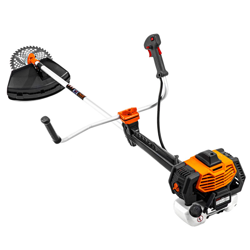 GTM CN650FAV - бензинова мотокоса (кущоріз) професійного класу, призначена для косіння трави, заростей і кущів діаметром до 25 мм на дачі, садовій ділянці або сільській місцевості. Коса оснащена 2-тактним бензиновим двигуном потужністю 1.8 кВт (2.5 к. с.) з підвищеним крутним моментом. Як паливо використовується суміш бензину з мастилом у пропорції 40:1 (25 мл мастила на 1 л бензину).