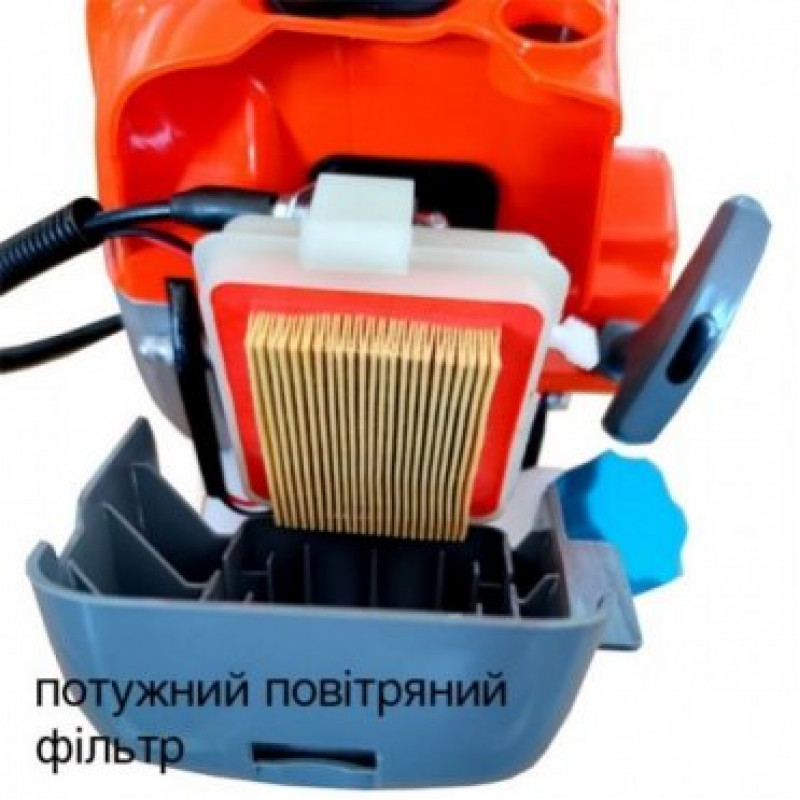 - Модель побудована на базі продуктивного двигуна потужністю 4200 Вт об'ємом 52 см3. Циліндр має хромоване покриття. Поршень оснащений двома компресійними кільцями. Свічка – стандартна.