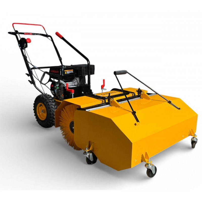 Машина має окремі приводи на щітку і колеса, що суттєво підвищує зручність і якість прибирання. Привід коліс через редуктор забезпечує плавний старт і рівномірний рух без ривків. Великі пневматичні колеса з протектором легко проїжджають по нерівних поверхнях. Механізми управління розміщені на ручках, що дозволяє зручно і швидко керувати машиною. Ручки керування регулюються по висоті. Завдяки можливості всесезонного використання, ця бензинова підмітальна машина буде економічно вигідним рішенням для комунальних служб, підприємств та великих домогосподарств.