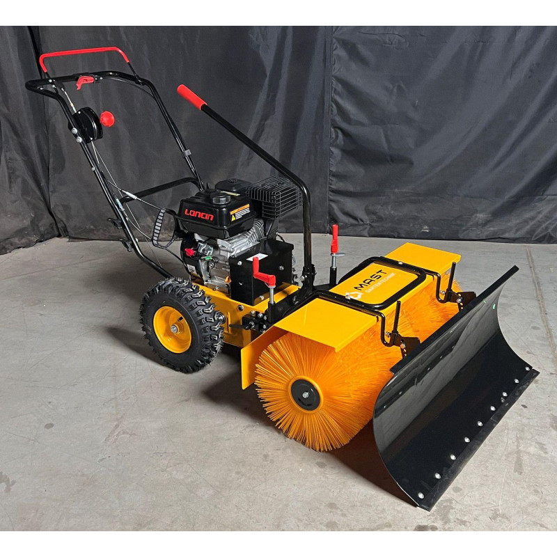 Підмітальна машина MAST Gartentechnik MT-KM800 3 в 1 - це самохідна бензинова техніка для прибирання сміття, листя, бруду та снігу з різних типів відкритих поверхонь, робоча ширина якої становить 80 см. 4-тактний двигун LONCIN G200F потужністю 4,1 кВт/ 6,5 к.с. забезпечує достатній крутний момент для прибирання важкого і вологого сміття та стабільну роботу під навантаженням. Циліндрична фронтальна щітка з міцним поліпропіленовим ворсом та регулюванням висоти і кута нахилу забезпечує рівномірний контакт по всій ширині і якісне змітання без пропусків.