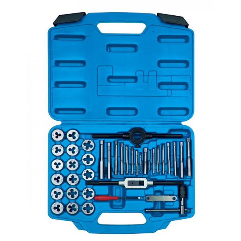 Набір метчиків та плашек метричних 39 одиниць М3-М12 з принаддям в пластиковому кейсі