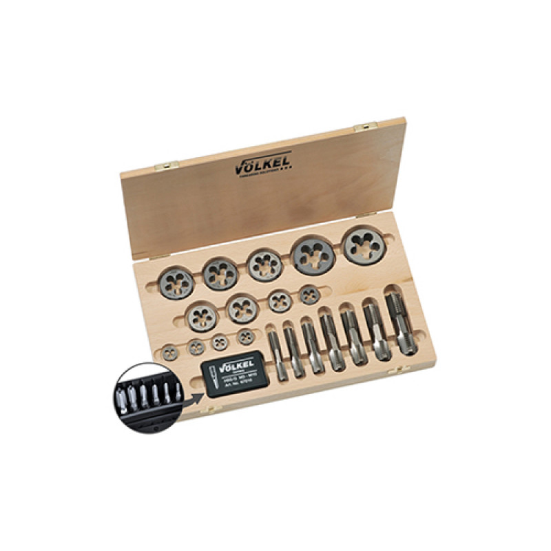 Набір мітчиків комбінованих та плашок G (BSP) 1/8-1“, 12 предметів, дерев'яний кейс VOLKEL 48628