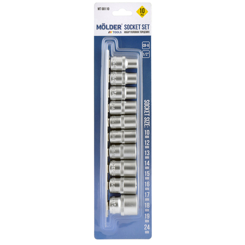 Набір головок торцевих на планці Molder 1/2" 10-24мм CR-V 10шт