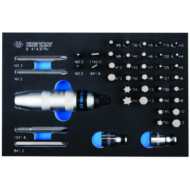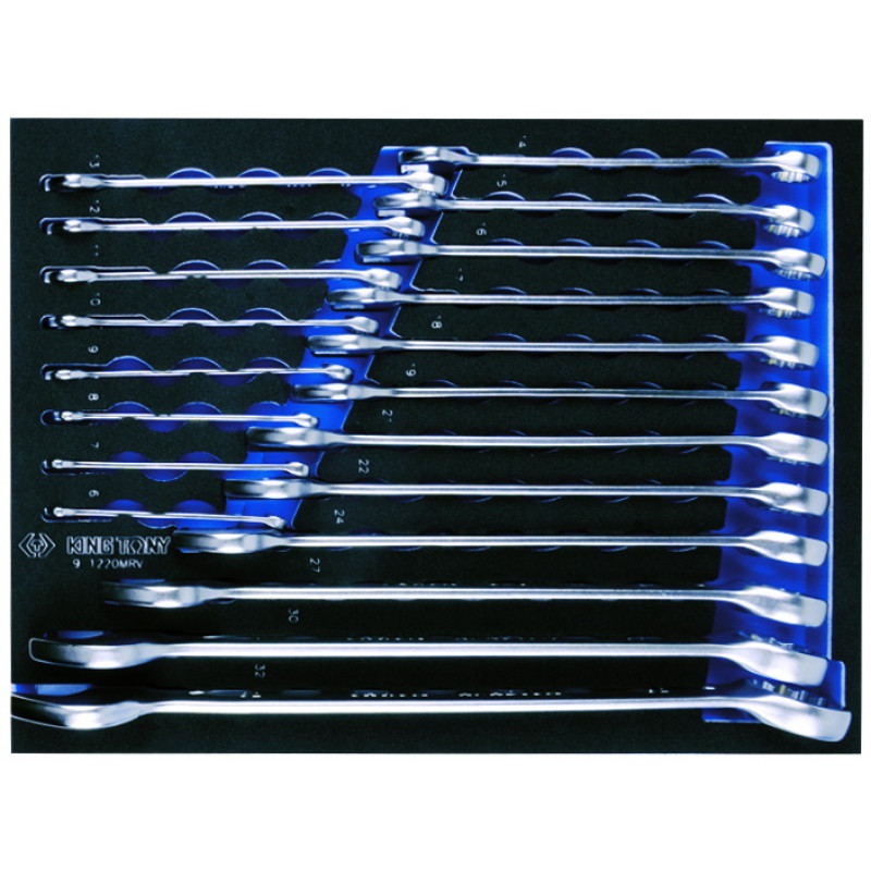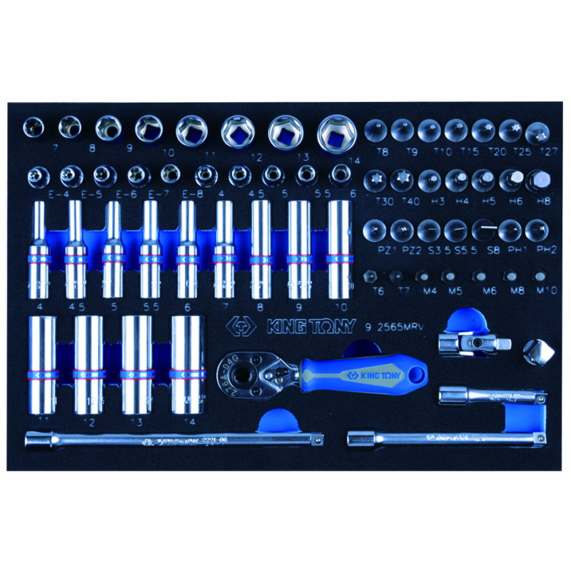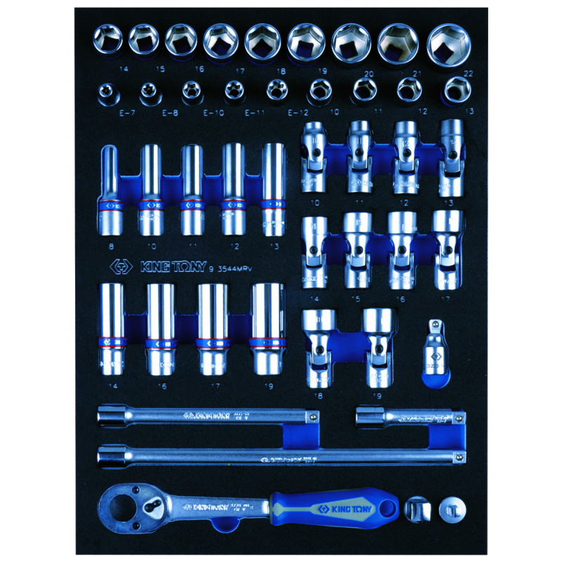 9-1220MRV Набір комбінованих ключів, ложемент, 20 предметів KING TONY 6, 7, 8, 9, 10, 11, 12, 13, 14, 15, 16, 17, 18, 19, 21, 22, 24, 27, 30, 32 мм 9-2565MRV Набір торцевих головок 1/4" з приладдям, ложемент, 65 предметів KING TONY 9-3544MRV Набір торцевих головок 3/8" з приладдям, ложемент, 44 предмети KING TONY 9-4143FRV Набір торцевих насадок, біт та ударна викрутка, ложемент, 43 предмети KING TONY 9-4537MRV Набір торцевих головок 1/2" з приладдям, ложемент, 37 предметів KING TONY 9-31124MRV Набір викруток, ложемент, 24 предмети KING TONY 9-40104GPV Набір плоскогубців та бокорізів, ложемент, 4 предмети KING TONY 9-40113GPV Набір плоскогубців, переставні кліщі та затискач, ложемент, 3 предмети KING TONY 9-90119MRV Набір накидних ключів та TORX L-подібних, ложемент, 19 предметів KING TONY