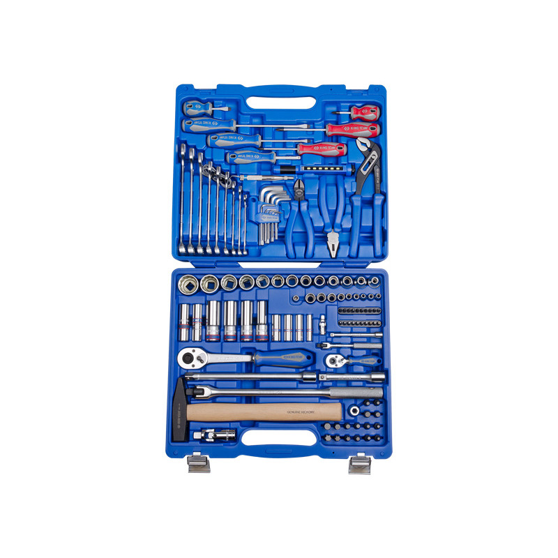 Набір універсальних інструментів на 110 предметів King-Tony виділяється на тлі інших готових комплектів бренду. Продукт присвячений 30-річчю торгової марки та розрахований на професіоналів. Виробник гарантує, що набір задовольнить потреби слюсарів авторемонтних станцій та підприємств. Стійкий до ударів та вологи пластиковий кейс, обладнаний надійними металевими замками. Рішення зацікавить слюсарів, які щодня використовують ручний інструмент. Знос у металевих замків на порядок нижчий, ніж у пластикових клямок. У наборі користувач знайде світлодіодний ліхтарик із кріпленнями: магніт та кліпса. 12-гранні головки адаптовані під профіль кріплення на 6 граней. Свічкові головки сумісні з більшістю автомобілів в Україні. Тріскачка з ювілейного набору під квадрат ¼ працює з головками та бітами без перехідника. Стійкість до агресивного середовища King-Tony – перевага набору. Металеві аксесуари не піддаються іржі, а також зберігають цілісність при зіткненні з маслами, бензином, лугами та кислотами. Незамінний помічник слюсаря супроводжується офіційною довічною гарантією виробника King-Tony. Склад набору: Головки та приладдя 1/2": Головка торцева стандартна дванадцятигранна серії 4330M: 8, 10, 12, 13, 14, 15, 17, 18, 19, 22, 24, 27, 30 мм. Головка торцева глибока дванадцятигранна серії 4230M: 14, 17, 19, 22 мм. Головка для свічок запалювання серії 463014RC, 463016R: 14 мм та 16 мм, 12 граней, гумовий фіксатор. Тріскачка, прапорцева з кнопкою серії 4771-10GR: 32 зубці, 250 мм. Подовжувач, серії 4251R: 125 мм та 250 мм. Вороток із шарніром, серії 4452-15FR: 380 мм. Утримувач вставок (біт), серії 414810M: 1/2">10 мм. Кардан серії 4791R: Кабельне Телебачення 1 шт. Головки та приладдя 1/4": Головка торцева стандартна дванадцятигранна серії 2330M: 5, 5.5, 6, 7, 8, 10, 12, 13, 14 мм. Головка торцева глибока дванадцятигранна серії 2235M: 8, 10, 12, 13 мм. Тріскачка прапорцева, серії 276A-04G: 72 зубці, 108 мм, застосовується для головок та вставок (біт). Подовжувач, серія 2221: 100 мм. Вороток із шарніром, серії 2452-05F: 125 мм. Тримач вставок (біт), серії 2141: 1/4">1/4". Кардан, серія 2792: Кабельне Телебачення 1 шт. Ключі: Ключ комбінований, серії 1060: 8, 10, 12, 13, 14, 15, 17, 18, 19 мм. Викрутки: Викрутка шліцева Slotted серії 1422: 5.5 x 100 мм, 6.5 x 150 мм, 6.5 x 38 мм. Викрутка хрестова Phillips серії 1421: PH1 x 80, PH2 x 100, PH2 x 38. Вставки (біти): 10 мм, довжина 36 мм, серії 1636: Шестигранники HEX: H5, H6, H7, H8, H10, H12. Торкс TORX: T30, T40, T45, T50, T55, T60. Сплайн SPLINE: M6, M8, M10, M12. 1/4", довжина 25 мм, серії 1025: Хрестові Phillips: PH0, PH1, PH2, PH3. Хрестові Pozidriv: PZ1, PZ2. Шлиц Slotted: 3, 4, 5, 6.5 мм. Шестигранники HEX: H2.5, H3, H4, H5, H6. Торкс TORX: T15, T20, T25, T27, T30. Шарнірно-губцевий інструмент: Плоскогубці комбіновані серії 6111-06: 160 мм. Бокорізи серії 6211-06: 160 мм. Захоплення переставної, серії 6516-10: 250 мм. Спеціальний інструмент: Набір Г-подібних шестигранників, 9 предметів, серії 1145MR: 1.5, 2, 2.5, 3, 4, 5, 6, 8, 10 мм. Інший інструмент: Ліхтар у формі ручки, серія 79831: 6 елементів, 135 люмен (lm), живлення: ААА. Тестер для перевірки напруги серії 9DC22: 6-24 В. Молоток квадратний, серії 7821-50: 500 Розміри (ДхШхВ): 422 x 275 x 119 мм. Вага: 9.245 кг.