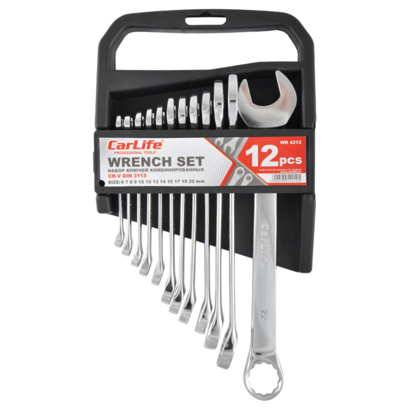 Набір CarLife WR4212 складається з 12-ти комбінованих ключів для роботи з різьбовими з'єднаннями, що мають зовнішній профіль. Рожково-накидні ключі широко застосовуються, починаючи з побутової сфери, закінчуючи різного роду виробництвами.