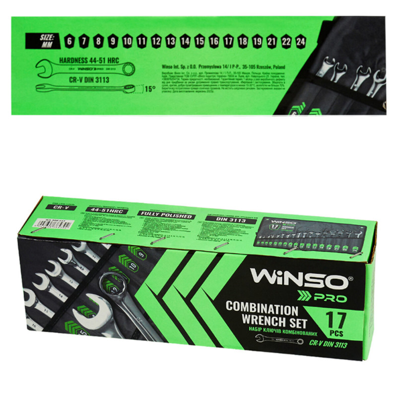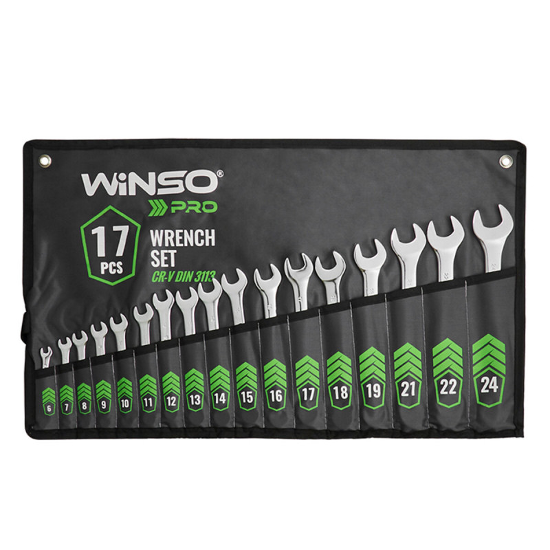 Набір комбінованих ключів WINSO PRO (17 шт., 6-24 мм) зроблений, щоб забезпечувати зручність, ефективність і довговічність у роботі.