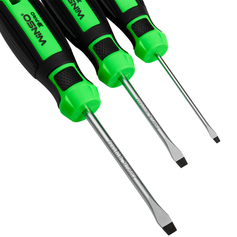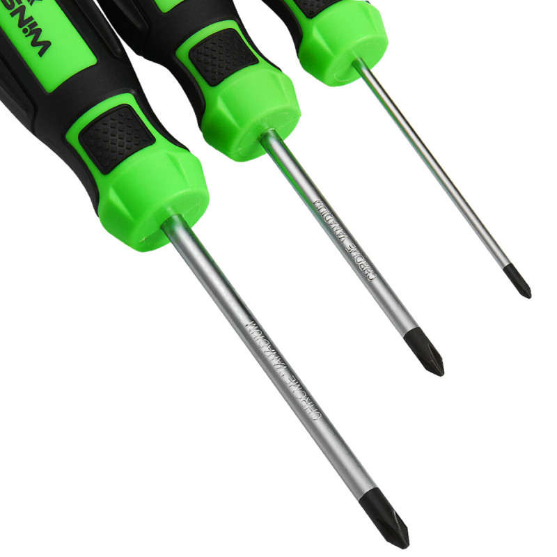 Набір викруток WINSO PRO із 6 штук — універсальне рішення для ремонту та щоденних завдань. У комплект входять викрутки з плоскими та хрестовими наконечниками різних розмірів. Жала виготовлені з високоякісної загартованої сталі для довговічної та надійної роботи. Ергономічні ручки з антиковзким покриттям забезпечують комфорт і точність під час використання. Інструменти підходять для ремонту техніки, меблів, електроніки та інших побутових завдань.