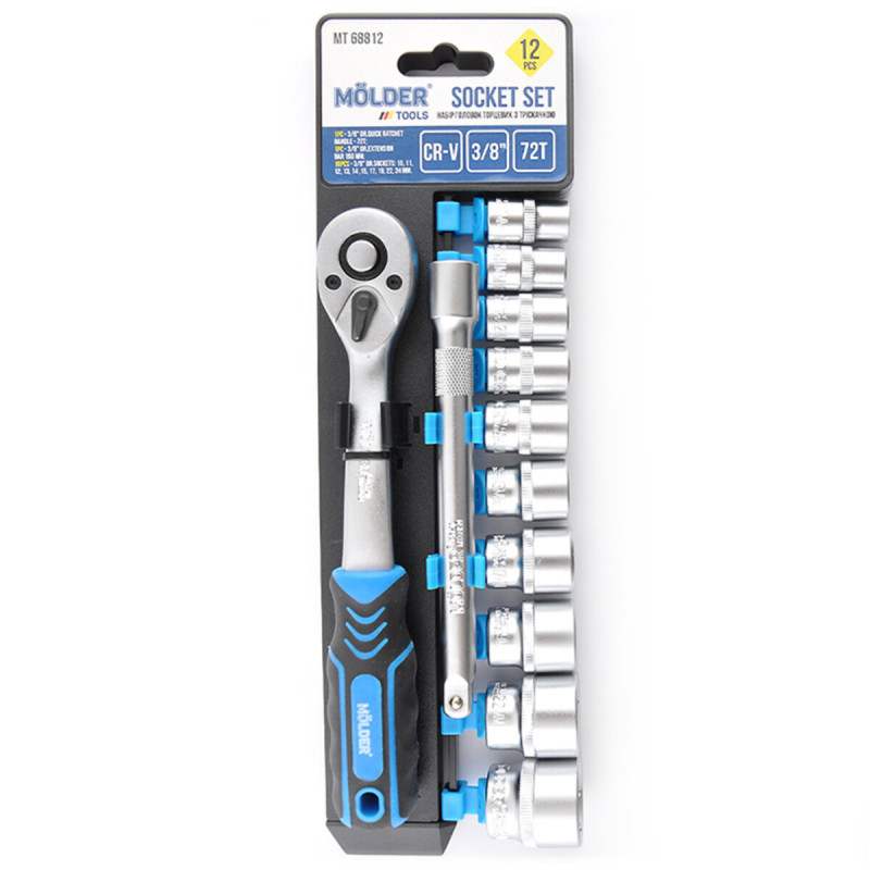 Професійний набір головок торцевих з тріскачкою та подовжувачем CR-V Molder 3/8" 72Т,10-24мм (12шт)