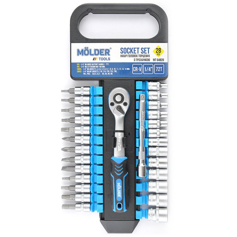 Професійний набір головок торцевих з тріскачкою та подовжувачем Molder CR-V 1/4" 72Т (28шт)