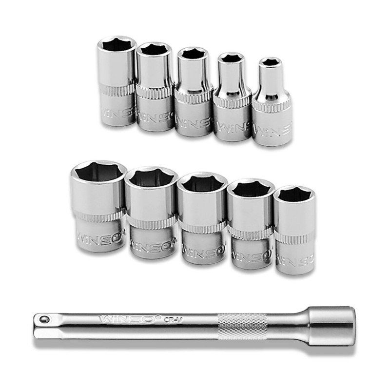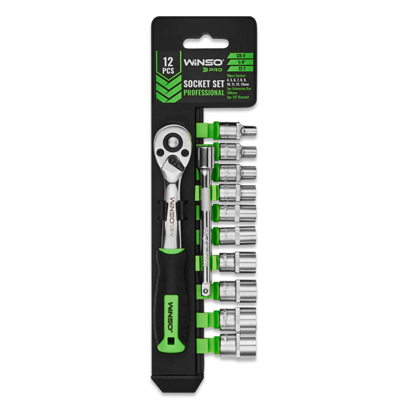Професійний набір головок торцевих з тріскачкою та подовжувачем Winso Pro CR-V 1/4" 72Т, 4-13мм 12шт